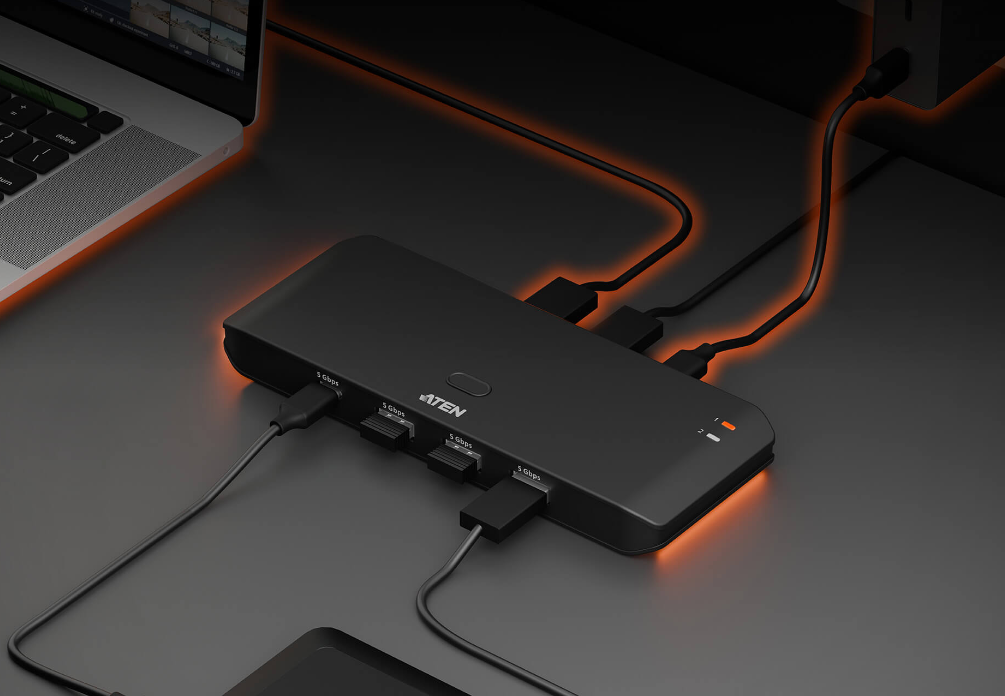 ATEN US4324 pozwala oszczędzić miejsce na biurku, uprościć zarządzanie urządzeniami USB i zwiększyć wygodę pracy z dwoma komputerami, eliminując konieczność ciągłego przepinania kabli.