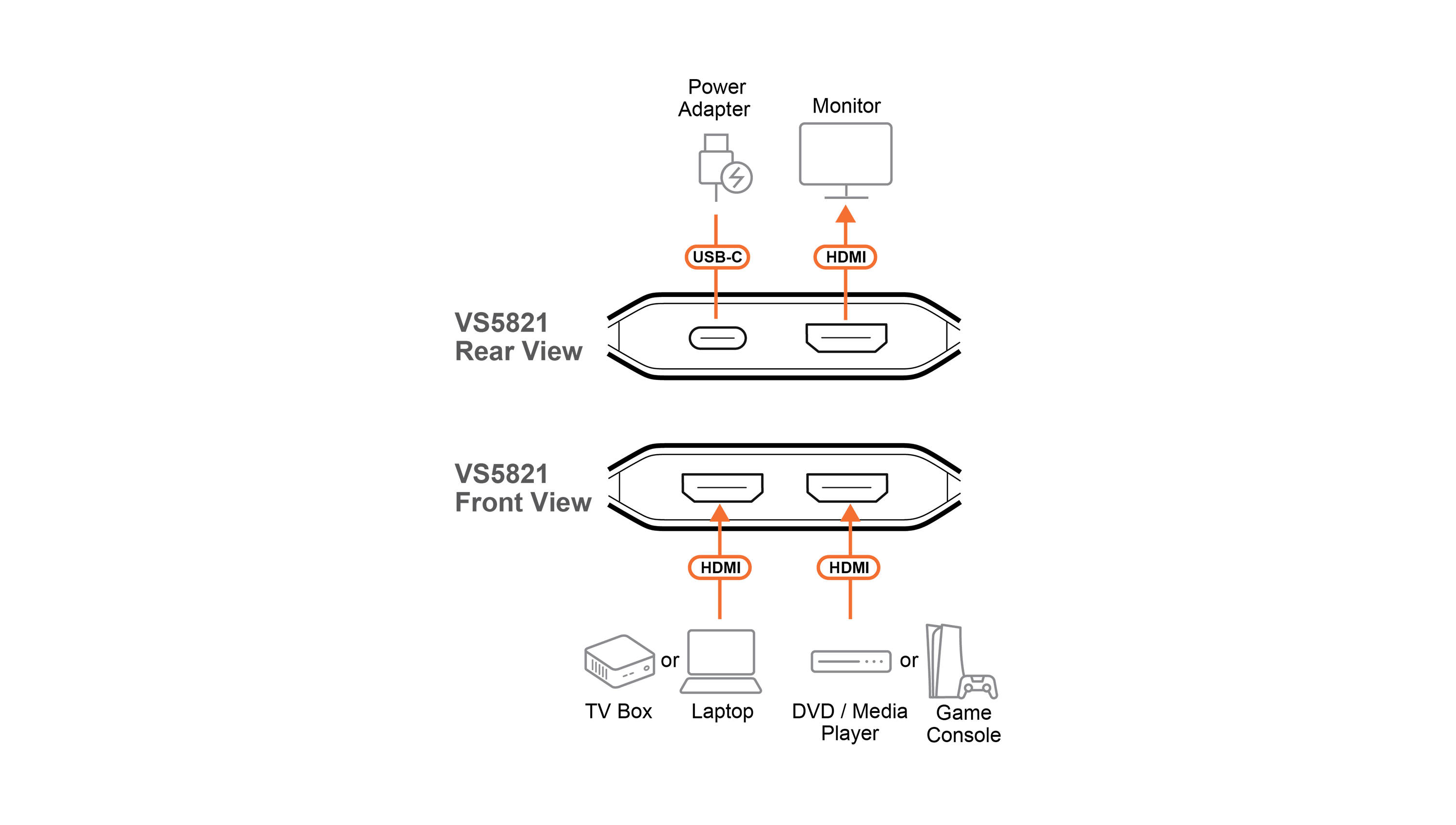 Ulepsz swoje wrażenia z oglądania dzięki modelowi VS5821 — 2-portowemu przełącznikowi HDMI zaprojektowanemu z myślą o dostarczaniu wydajności nowej generacji w standardzie 8K Ultra HD, zarówno do domowej rozrywki, jak i profesjonalnych instalacji AV.